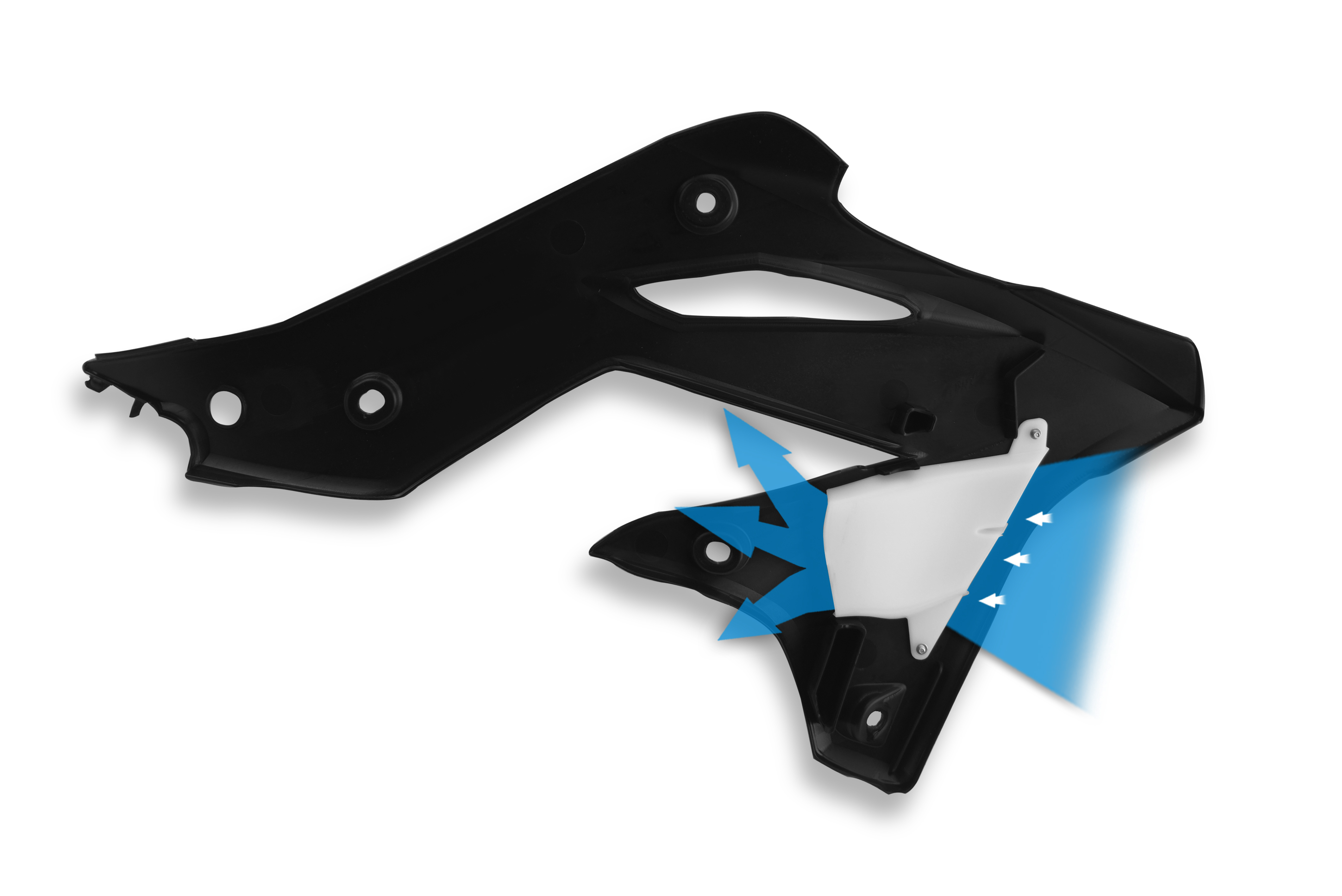 The patented Cycra Powerflow Technology dramatically reduces Radiator, Fuel Tank and Engine Head Temperatures.